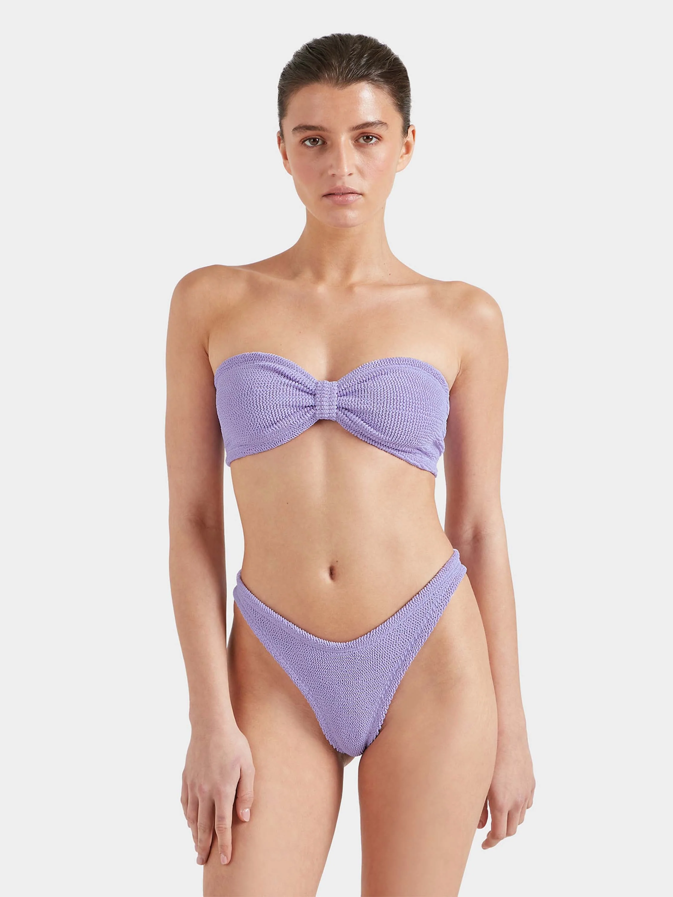 Less is more. Our classic Jean bikini top meets our first ever Brazilian bottom, with ruched detailing at the back for the perfect fit and ultimate tanning.